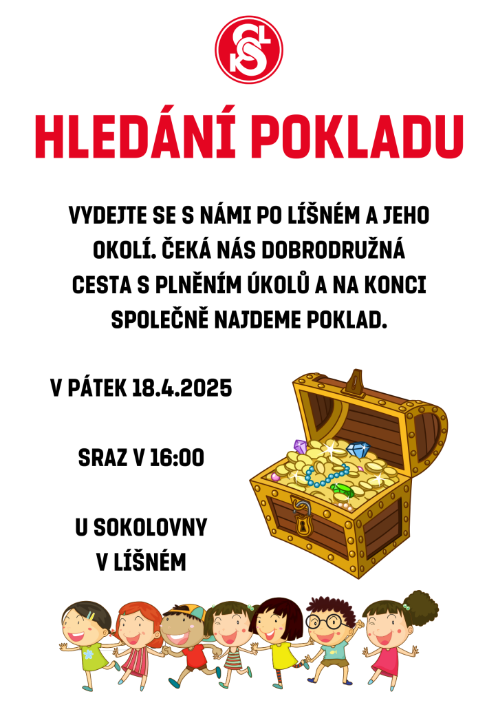 V pátek 18. dubna proběhne v okolí Líšného dobrodružná cesta s plněním úkolů, s cílem nalezení pokladu. Sraz objevitelské výpravy bude v 16 hodin u sokolovny v Líšném.