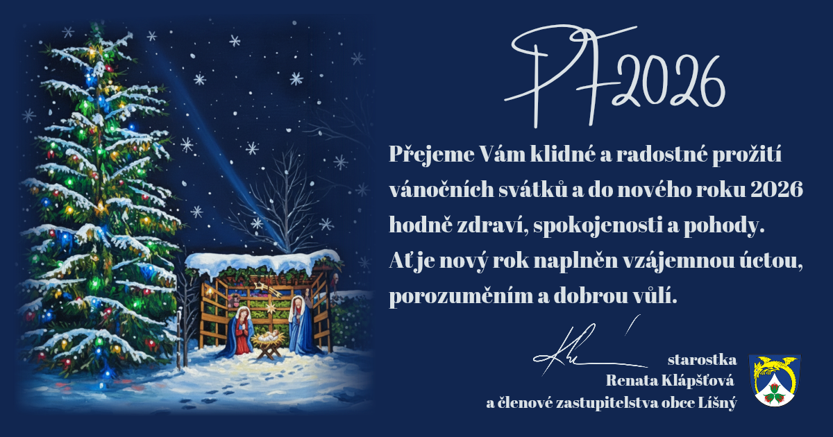 Přejeme Vám klidné a radostné prožití vánočních svátku a do nového roku 2026 hodně zdraví, spokojenosti a pohody. Ať je nový rok naplněn vzájemnou úctou, porozuměním a dobrou vůlí.